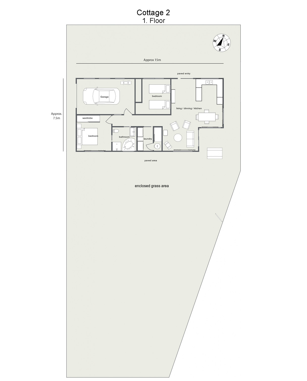 Each cottage contains its own fully equipped kitchen, dining and living spaces as well as a bathroom and laundry. Outside you will find your enclosed yard suitable for dogs, along with a BBQ, allowing you to make the most of the outdoor space and enjoy the stunning vistas while you get to know the local wildlife passing by.